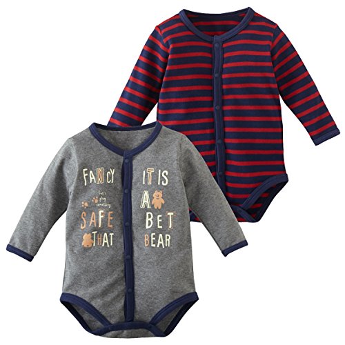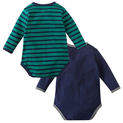 (ニッセン) nissen 男児長袖ボディスーツ2枚組(総柄+無地) 紺系+チャコール杢 身長90cm