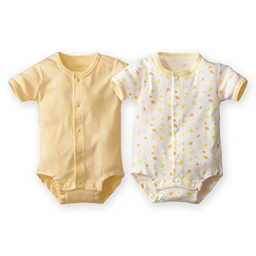 (ニッセン) nissen 綿100% 半袖 前開き ボディスーツ 2枚組 イエロー系 身長60cm