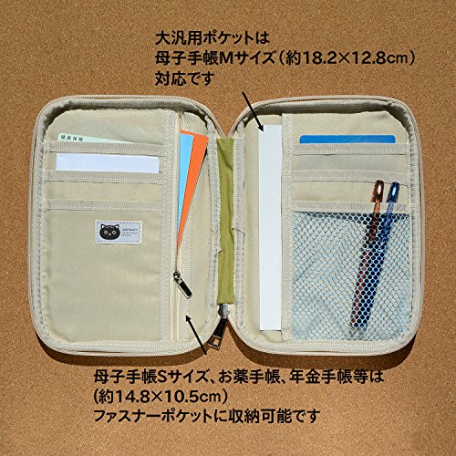 ナイロン素材のマルチケースです。発色の良い表地にさりげなくクロネコのアップリケがついてます。しっかりとした作りで、内容物をしっかり保護します。 母子手帳(Mサイズ、Sサイズ)、お薬手帳、パスポート、銀行通帳などの収納に便利です。 内側には2つのカードポケット(保険証、診察券など収納可能です)、4つの汎用ポケット、ファスナーポケット、領収書などが入る大きなポケットがあります。 背面にも小銭や印鑑などが入るファスナー付きポケットがあり、大切なアイテムを収納、持ち運びできる便利なケースです。 大きな汎用ポケットの対応サイズは以下のとりです。 母子手帳Mサイズ(約18.2×12.8cm)、母子手帳Sサイズ(約14.8×10.5cm)、お薬手帳・年金手帳(14.8×10.5cm)、銀行通帳(約14×8.7cm)、パスポート(約128×91cm)
