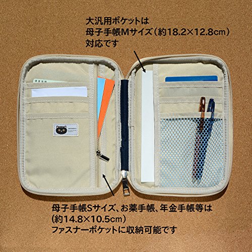 ナイロン素材のマルチケースです。発色の良い表地にさりげなくクロネコのアップリケがついてます。しっかりとした作りで、内容物をしっかり保護します。 母子手帳(Mサイズ、Sサイズ)、お薬手帳、パスポート、銀行通帳などの収納に便利です。 内側には2つのカードポケット(保険証、診察券など収納可能です)、4つの汎用ポケット、ファスナーポケット、領収書などが入る大きなポケットがあります。 背面にも小銭や印鑑などが入るファスナー付きポケットがあり、大切なアイテムを収納、持ち運びできる便利なケースです。 大きな汎用ポケットの対応サイズは以下のとりです。 母子手帳Mサイズ(約18.2×12.8cm)、母子手帳Sサイズ(約14.8×10.5cm)、お薬手帳・年金手帳(14.8×10.5cm)、銀行通帳(約14×8.7cm)、パスポート(約128×91cm)