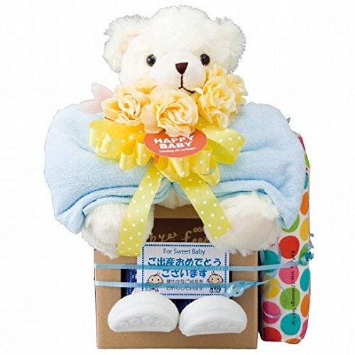 仕様 パンパース紙おむつSサイズ8枚・30×76cmフェイスタオル1枚・綿100%・11.5cm(対象年齢6~18ヵ月)トレーニングシューズ1足・アッパー部:コットン、ポリウレタン・底部:サーモプラスチックラバー・高さ約20cmくまのぬいぐるみ1体・おしりふき1個付・おむつ[日本製]・トレーニングシューズ[韓国製]・その他[中国製]