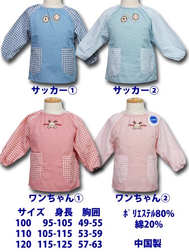幼児用子供用スモック(サッカーボール・ワンちゃん) 100cm110cm120cm 男児・女児・幼稚園・保育園・保育所 (120, ワンちゃん赤)