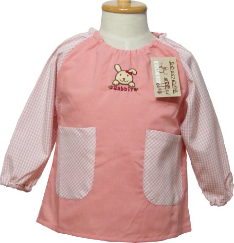 幼児用子供用スモック(サッカーボール・ワンちゃん) 100cm110cm120cm 男児・女児・幼稚園・保育園・保育所 (110, うさぎ無地ピンク)