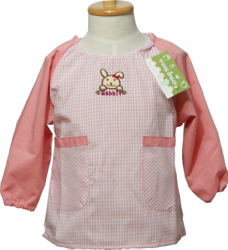 幼児用子供用スモック(サッカーボール・ワンちゃん) 100cm110cm120cm 男児・女児・幼稚園・保育園・保育所 (100, うさぎ格子ピンク)