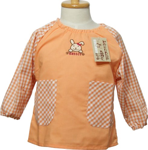 幼児用子供用スモック(サッカーボール・ワンちゃん) 100cm110cm120cm 男児・女児・幼稚園・保育園・保育所 (100, うさぎ無地オレンジ)