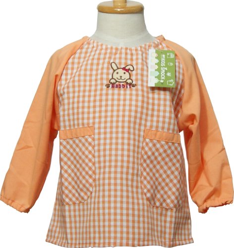 幼児用子供用スモック(サッカーボール・ワンちゃん) 100cm110cm120cm 男児・女児・幼稚園・保育園・保育所 (100, うさぎ格子オレンジ)