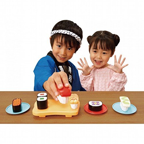 【商品説明】●マグロ(トロ)1個、イカバジルソース(イカ)1個、サーモン(たまご)1個、金の魚(銀の魚)1個、タレ付き穴子(穴子)1個、車エビ(エビ)1個、花太巻き(たまご太巻き)1個、イクラ軍艦(納豆軍艦)1個、鉄火巻き3個、かっぱ巻き3個、シャリ(わさびナシ3個)、シャリ(わさびアリ)3個、まほうの壺1個、ゲタ1個、ハケ1本、包丁1本、皿(青・黄・赤)各2枚、プレイシート1枚、収納袋1枚●対象年齢:3歳~●ST合格品お湯とお水で色が変わり、お寿司のネタが変わります。お寿司をにぎっておすしやさん気分!包丁で巻きずしをザクザク切って遊ぶこともできます。プレイシートがついておりお部屋でも遊べます。収納袋もついています。