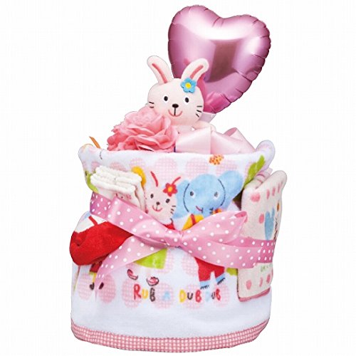 仕様 パンパース紙おむつSサイズ13枚・30×70cmフェイスタオル1枚・33×36cmウォッシュタオル1枚・20×20cmミニタオル1枚・綿100%・6×4×20cmマイク型ニギニギ1個・ポリエステル100%・7~8cm(新生児サイズ)ベビーソックス1足・綿63%・アクリル27%・ポリエステル8%・ポリウレタン2%・ウォッシュ、ミニタオル・ベビーソックス・おむつ[日本製]・その他[中国製] メーカー品番:2016-RUB02-P(ピンク)