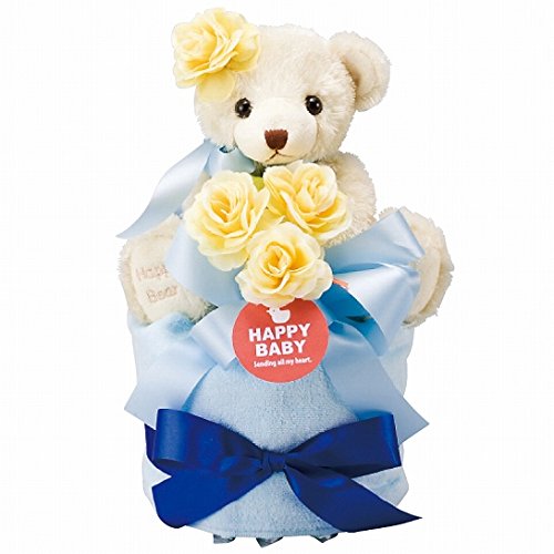 【商品説明】かわいいオムツケーキにくまちゃんのぬいぐるみを添えて…。 HAPPY BABYのカード付き。