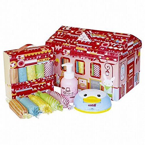 【商品詳細】かわいく着飾ったおむつと実用的なおしりふき、ベビーソープがかわいいBOXに入った飾っていたくなるギフトです。