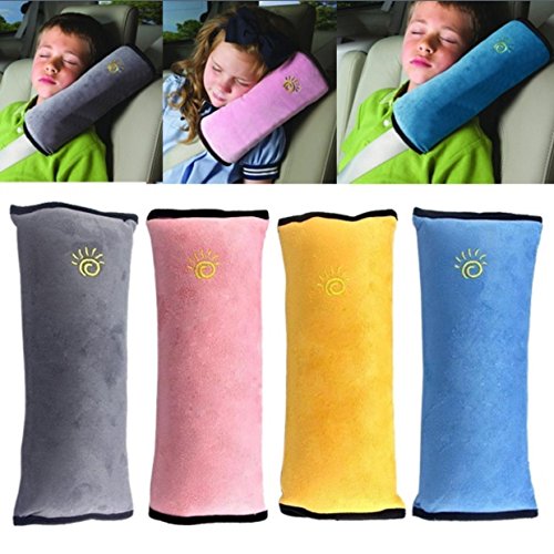 - シートベルトに取り付けて使えるクッション枕 お子様のドライブ中のうたた寝に最適。シートベルトに取り付けるだけで、やわらかなクッションの感覚を楽しめます。