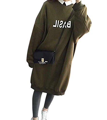 formanism あったか スウェット ロング 裏起毛 ワンピース ゆったり トレーナー レディース 全3色 (カーキ)