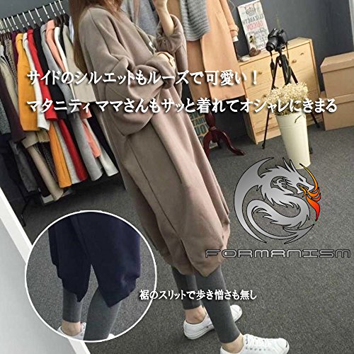 formanism あったか スウェット ロング 裏起毛 ワンピース ゆったり トレーナー レディース 全3色 (ネイビー色)