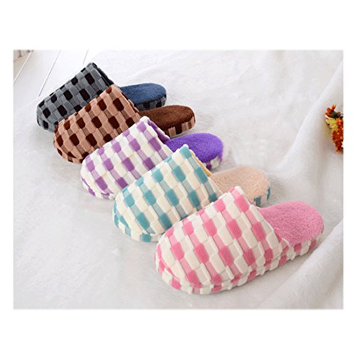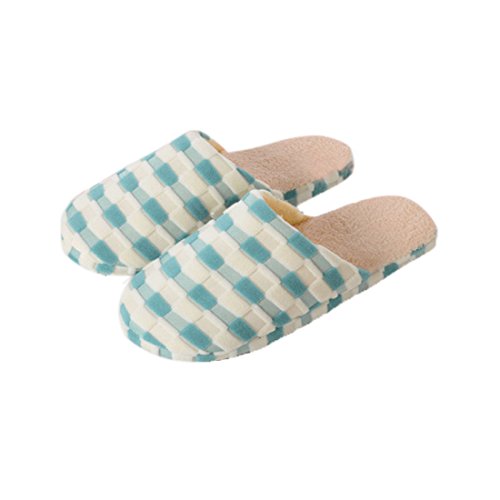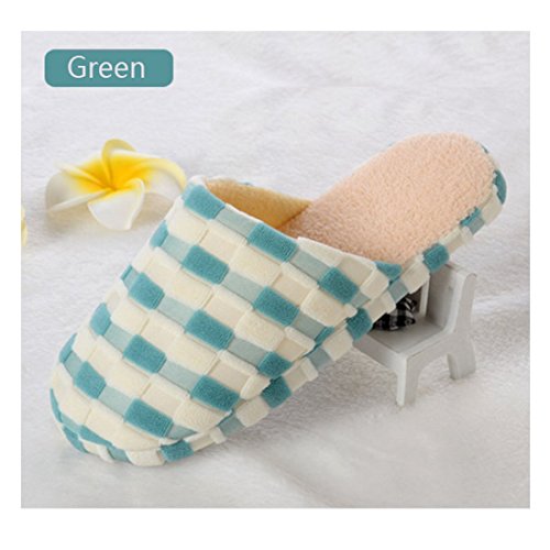 男女のカップルの格子のふかふか綿のスリッパ (40-41, グリーン)