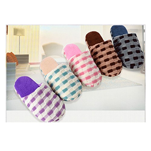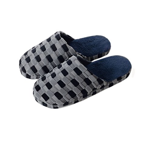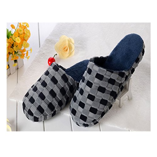 男女のカップルの格子のふかふか綿のスリッパ (44-45, 灰色)