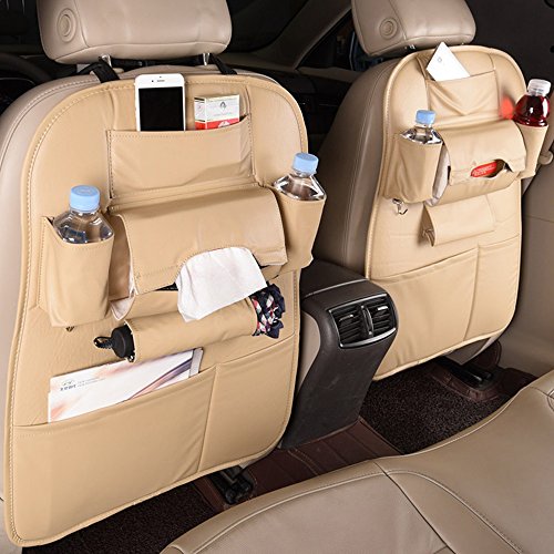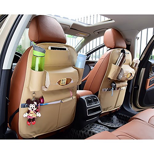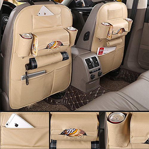 1個 多機能車両収納袋 novopal 後部座席 収納バッグ カー 折り畳式 車用 収納ポケット 多機能 車内整理 PU素材(ベージュ)