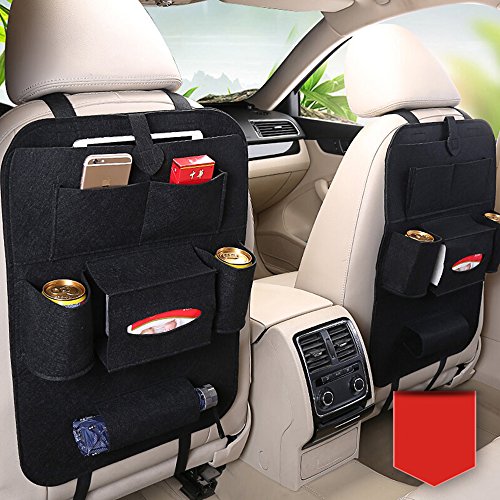 車用シートバックポケット カー 後部座席 収納バッグ フェルト製 ブラック