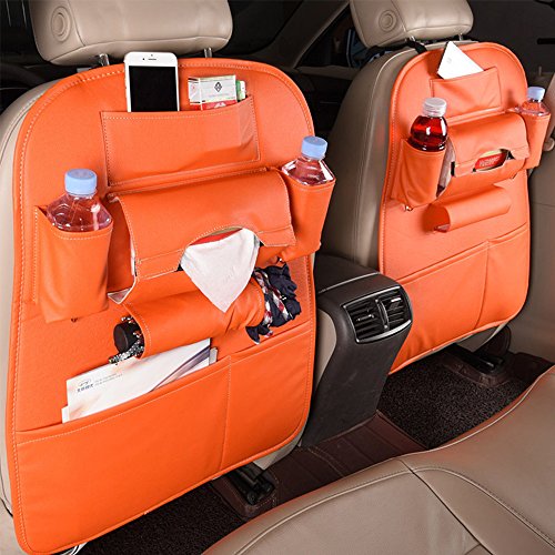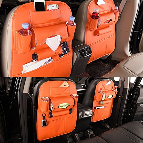 1個 多機能車両収納袋 novopal 後部座席 収納バッグ カー 折り畳式 車用 収納ポケット 多機能 車内整理 PU素材(オレンジ)