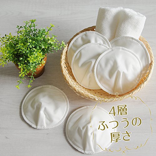 nunona 布 の 母乳パッド お買い得!6枚入 オーガニック コットン 100% 防水布つき かぶれにくくムレにくい【4層・12cm】 [パールホワイト]