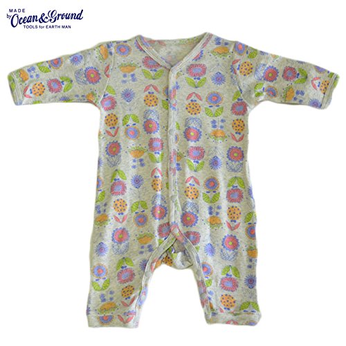 オーシャンアンドグラウンド (Ocean&Ground) ベビー肌着長袖ロンパースのご紹介です! ベビーの事を考えた”ふわさら”コットン生地を使用♪ ナチュラルな総柄デザインで、肌着ロンパースですが一枚でも十分お出かけ出来ます。 フロントのスナップボタンは足首から首元まで全開閉いたします。 お着替えも楽ちんに行えます。 同じ柄でスタイも展開してます。 セットコーデも可愛いですよ♪ サイズは70cmのワンサイズFree。 オールシーズン使える、ベビーには欠かせない肌着ロンパース! 女の子も男の子もデザイン豊富で、ギフトや出産祝いにもオススメです! 素材 コットン100% サイズスペック(目安) 70cm(Free) 総丈48 身幅26 袖丈19 ※個体差がありますので、目安としてお考えください。