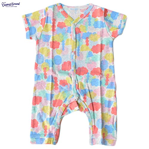 オーシャンアンドグラウンド|ベビー肌着半袖ロンパース|カラフルクラウド柄|ピンク