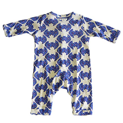 オーシャンアンドグラウンド|ベビー肌着長袖ロンパース|BAT柄|ネイビー