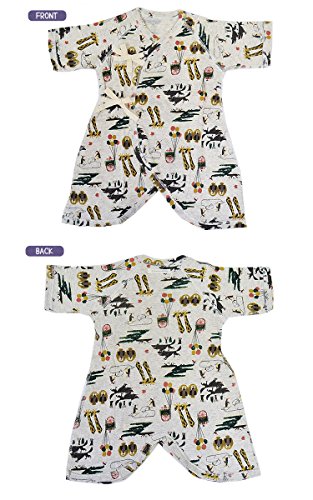 スナップボタン付きで足を動かしたり抱っこしてもすそがめくれません。