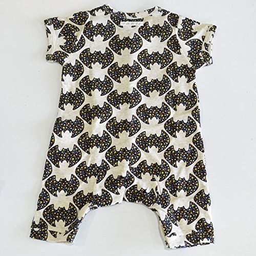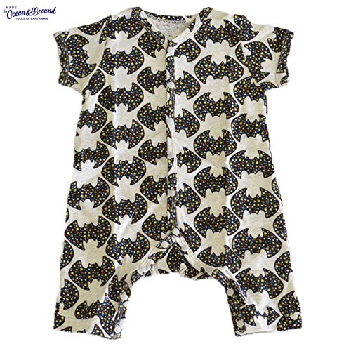 オーシャンアンドグラウンド|ベビー肌着半袖ロンパース|BAT柄|ブラック