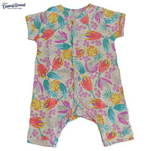 オーシャンアンドグラウンド (Ocean&Ground) ベビー肌着半袖ロンパースのご紹介です! ベビーの事を考えた”ふわさら”コットン生地を使用♪ ナチュラルな総柄デザインで、肌着ロンパースですが一枚でも十分お出かけ出来ます。 フロントのスナップボタンは足首から首元まで全開閉いたします。 お着替えも楽ちんに行えます。 同じ柄でスタイも展開してます。 セットコーデも可愛いですよ♪ サイズは70cmのワンサイズFree。 オールシーズン使える、ベビーには欠かせない肌着ロンパース! 女の子も男の子もデザイン豊富で、ギフトや出産祝いにもオススメです! 素材 コットン100% サイズスペック(目安) 70cm(Free) 総丈48 身幅26 袖丈8 ※個体差がありますので、目安としてお考えください。