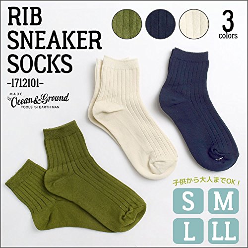 (ocean&ground) オーシャン&グラウンド ソックス 靴下 1712101 クルーソックス リブ 靴下 キッズ レディース 子供 大人 シンプル 無地 男の子 女の子 通園 通学