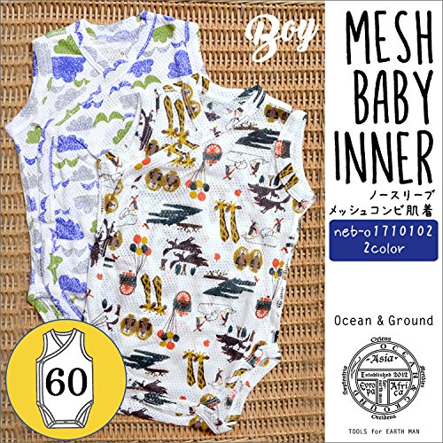 (ocean&ground) オーシャン&グラウンド メッシュ コンビ肌着 ノースリーブ 春夏用 新生児 肌着 短肌着 1710102 ベビー 赤ちゃん ロンパース 男の子 ボディスーツ