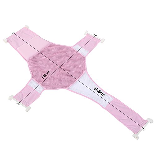 ベビー用入浴ネット ベビーバスネット ベビー入浴をサポート 滑り止め ベビーを保護 十字ネット スポンジ枕内蔵(ピンク)