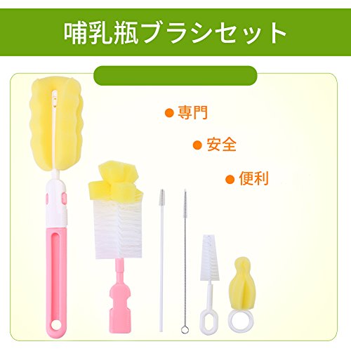 哺乳瓶ブラシセット ボトルブラシ スポンジブラシ 乳首/哺乳瓶/水筒 洗浄ブラシ 衛生なPP製 6点セット (ピンク)