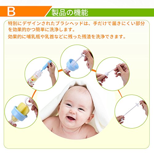 - 【衛生で高品質な素材】高品質なスポンジとPP素材を採用しており、お湯に強くて衛生で安全にご使用いただけます。ブラシは瓶を傷つけにくいです。哺乳瓶や乳首などに残った残渣を洗浄できる便利なブラシセットです。