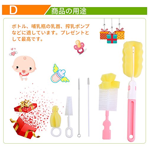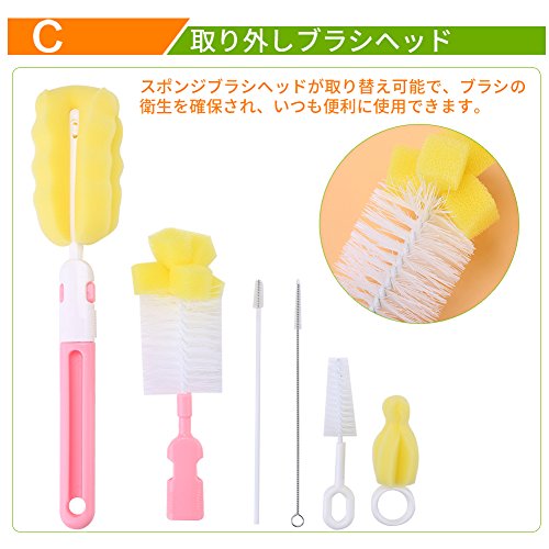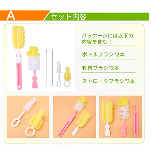 - 【色々な用途】哺乳瓶だけでなく、水筒・ステンレスボトルのお手入れ、ペットボトルの洗浄などにもご利用いただけます。スポンジ入りもセットになっているので泡立てながら洗えます。他に、超極細ブラシは調味料容器やストローのつまりを解消します。