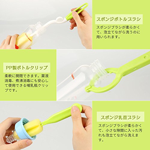 - 【色々な用途】哺乳瓶だけでなく、水筒・ステンレスボトルのお手入れ、ペットボトルの洗浄などにもご利用いただけます。スポンジ入りもセットになっているので泡立てながら洗えます。他に、超極細ブラシは調味料容器やストローのつまりを解消します。