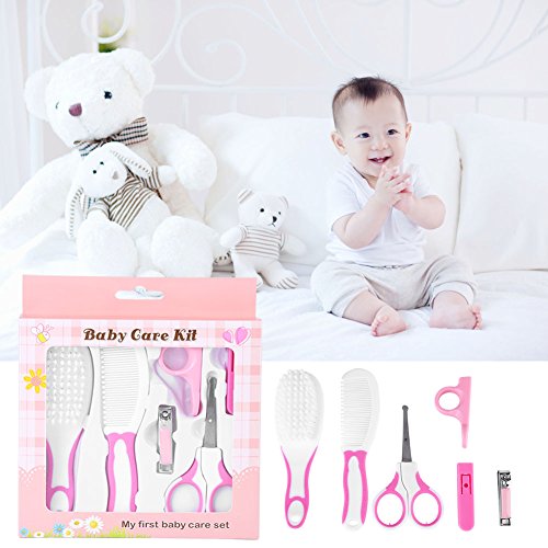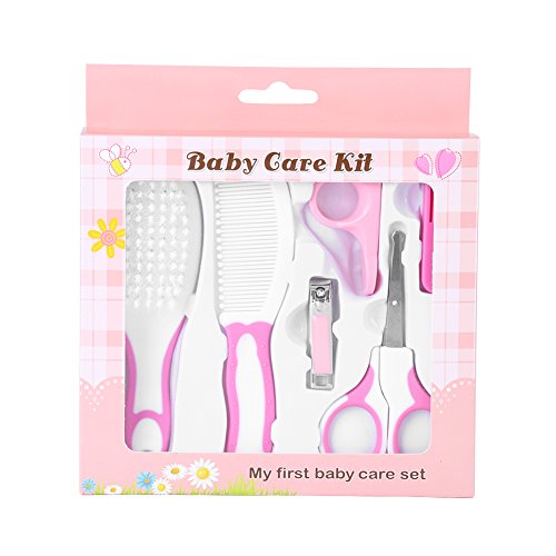 ネイルケア 4点セット ベビーレーベル ネイルケアセット 赤ちゃん爪切りセット ベビーケア用品 持ち運び便利 キッズ ヘアブラシ 爪やすり ハサミ (ピンク)