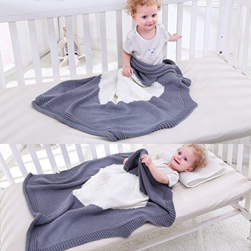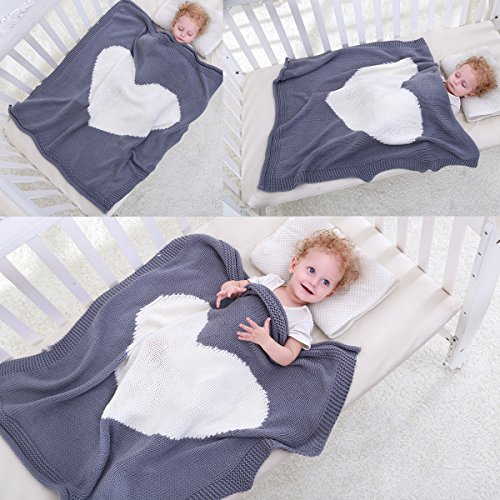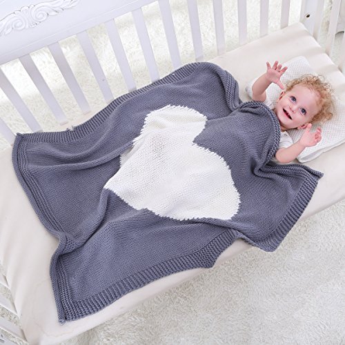 oenbopo ブランケット ベビー 可愛い おしゃれ キャラクター ニット ひざかけ 78cm x 100cm 暖かい 柔らかい 昼寝に対応 冷房対策春・夏・秋用 ベッド ソファー用 オフィス用 丸洗い可 心の図案 毛布 4色 (グレー)