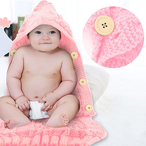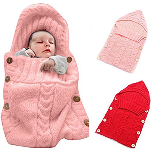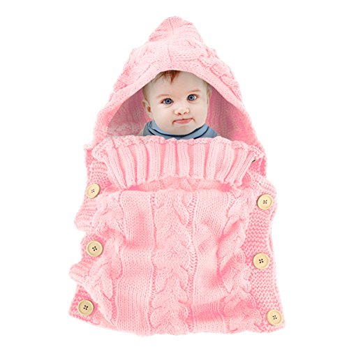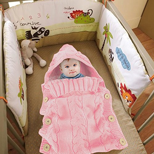 oenbopo ベビー用寝袋 赤ちゃん用おくるみ ニット製 ボタン付き 肌触りいい 出産祝い 記念撮影 ギフトにも大人気 (ピンク)