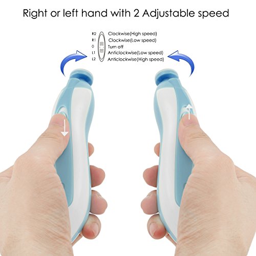 - 【多様な動作モード】高速モードと低速モードがあり、赤ちゃんには低速、ママには低速&高速というように、便利な2段階スピード設定。回転方向は左右に切り替えができるので、方向を気にせず左右どちらの手のお手入れもしやすく、色々な形の爪に使えます。