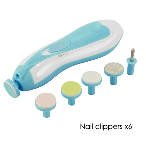 oenbopo 電動ネイルケアキット ベビーレーベル アタッチメント6種類付き LEDライト付き 収納ケース付き 電動爪磨き 電池付属しない (ブルー)