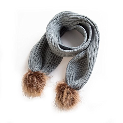 oenbopo ベビー用マフラー ニット製 ポンポン付き 超可愛い 防寒 冬 しもやけ 対策 キッズ子供用 誕生日 お祝い 七五三 プレゼント 公園 お出かけ お散歩 スカーフ (グレー)
