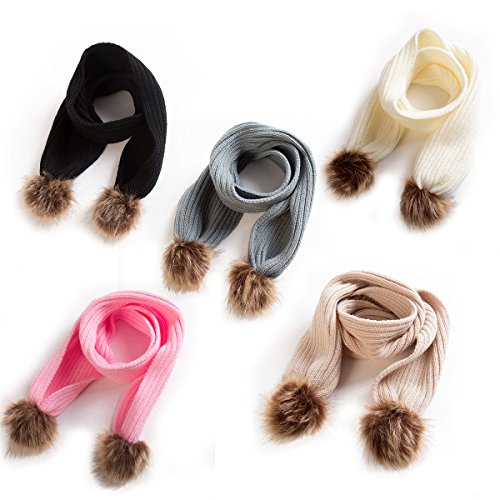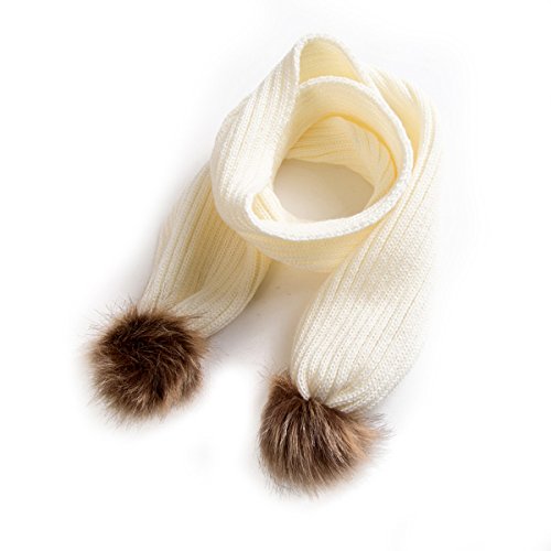 oenbopo ベビー用マフラー ニット製 ポンポン付き 超可愛い 防寒 冬 しもやけ 対策 キッズ子供用 誕生日 お祝い 七五三 プレゼント 公園 お出かけ お散歩 スカーフ (ホワイト)