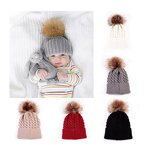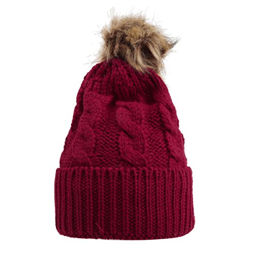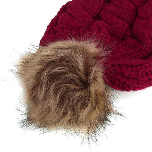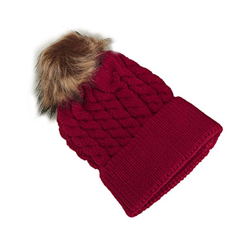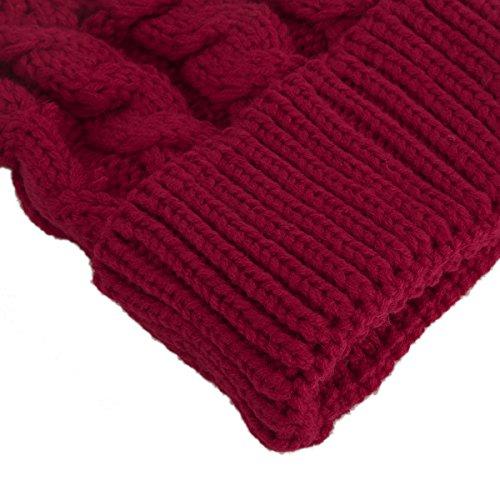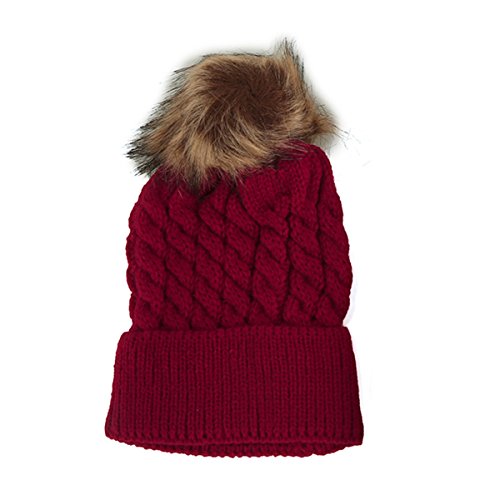 oenbopo ニット帽子 赤ちゃん用 ニットキャップ ケーブルニット ポンポン付き軽量 伸縮性ある 生産祝い フりーサイズ 6つ色 (レッド)