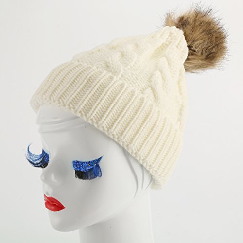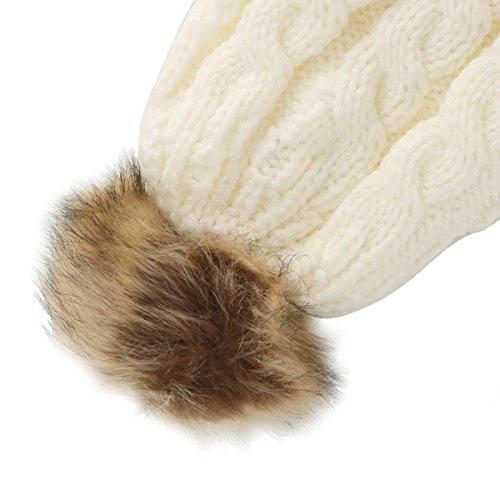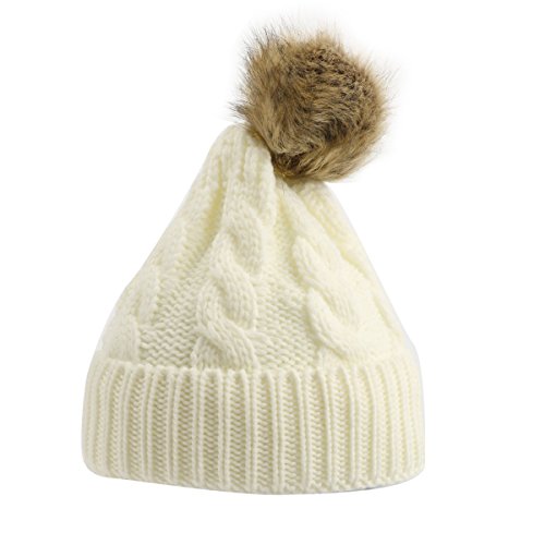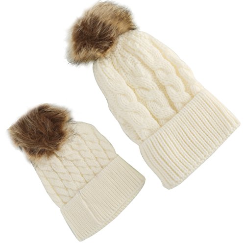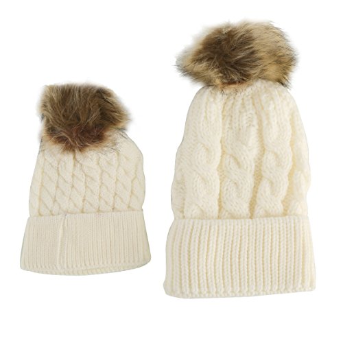 oenbopo 親子ニット帽子 ニットキャップ ケーブルニット ポンポン付き軽量 伸縮性ある フりーサイズ シンプル スキー スノボ アウトドア 普段使いに メンズ レディース 全6色 (ホワイト)