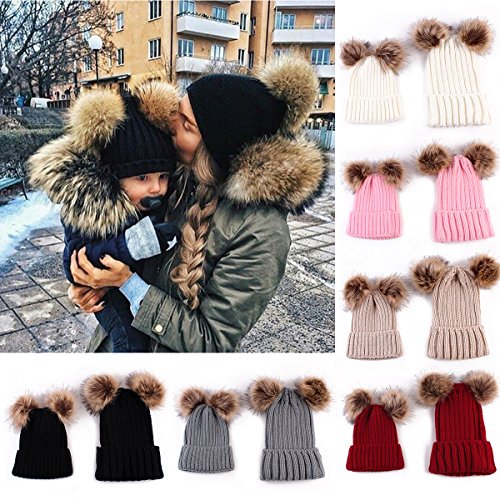 oenbopo ニット帽子 親子式 ポンポン付き軽量 伸縮性ある フリーサイズ スキー スノボ アウトドア 普段使いに ニットキャップ (ブラック)