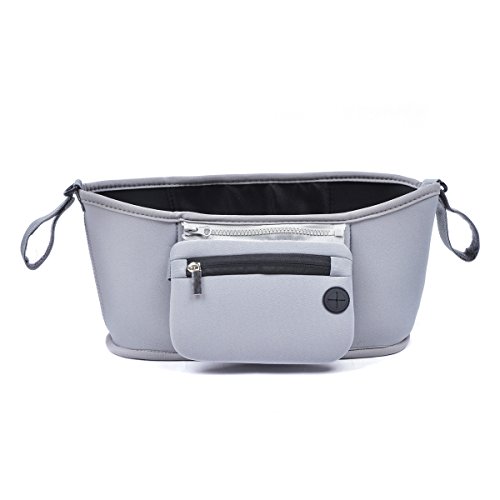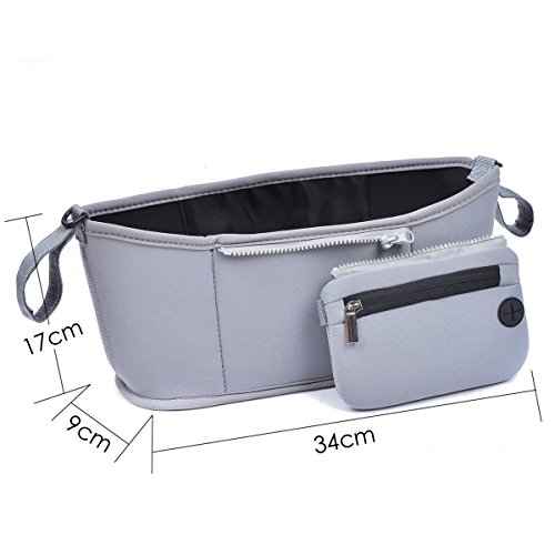 oenbopo ベビーカー用バッグ リンク ボトル ホルダー 多機能小物入れ 取り外し可能ポーチ付き イヤホンの穴付き 飲み物やお財布や携帯電話やカメラなど ジッパーポケットストローラーオーガナイザー ママで大活躍 3色 (グレー)