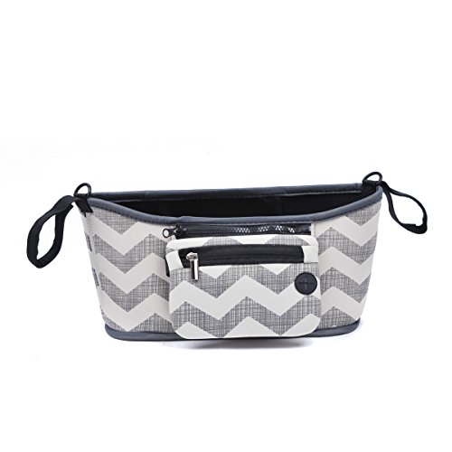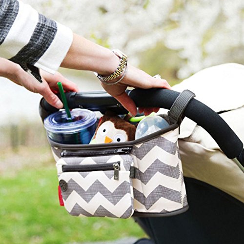 oenbopo ベビーカー用バッグ リンク ボトル ホルダー 多機能小物入れ 取り外し可能ポーチ付き イヤホンの穴付き 飲み物やお財布や携帯電話やカメラなど ジッパーポケットストローラーオーガナイザー ママで大活躍 3色 (縞)