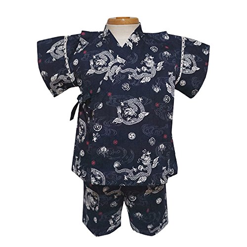 甚平スーツ 龍柄 定番 キッズ 男の子 子供 日本製 夏物 七夕 夏祭り j-71490 110cm ネイビー