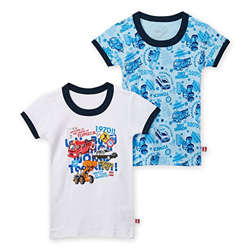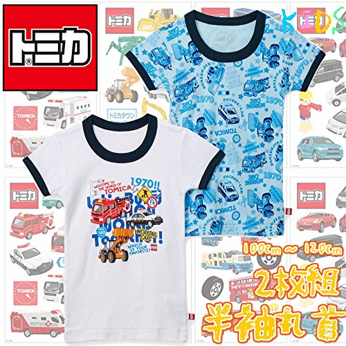 トミカ TOMICA 半袖丸首シャツ 2枚組 肌着 パトカー 消防車 ブルトーザー 100cm 2枚組